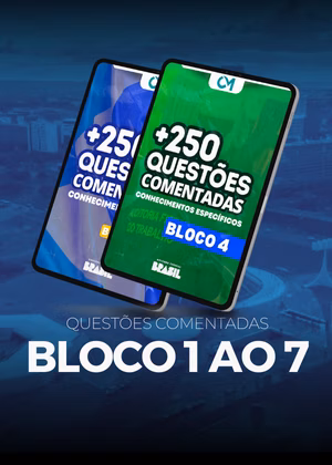 O material de +250 Questões comentadas - Bloco 01 ao 07 (Conhecimentos Geral).