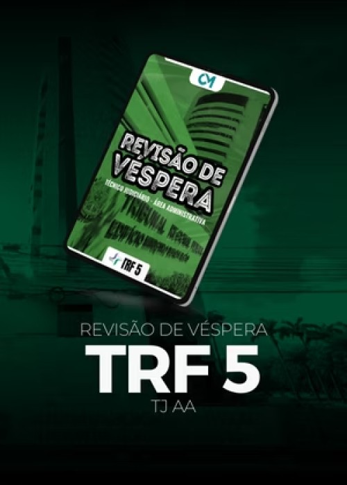 O Revisão de Véspera é um material 100% focado no Concurso de Analista Judiciário - Área Administrativa do TRF5.